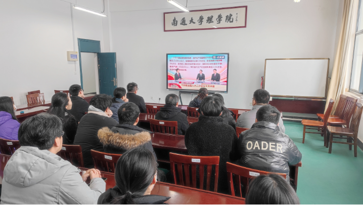 3月5日上午,英国上市公司官网365组织师生观看十四届全国人大二次会议开幕直播,认真聆听国务院总理李强代表国务院向大会作的《政府工作报告》。